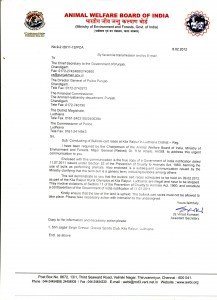The letter dated 8th February, 2012, that the AWBI issued to the Ludhiana district authorities, to stop the litigation